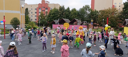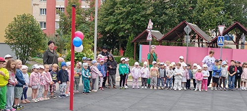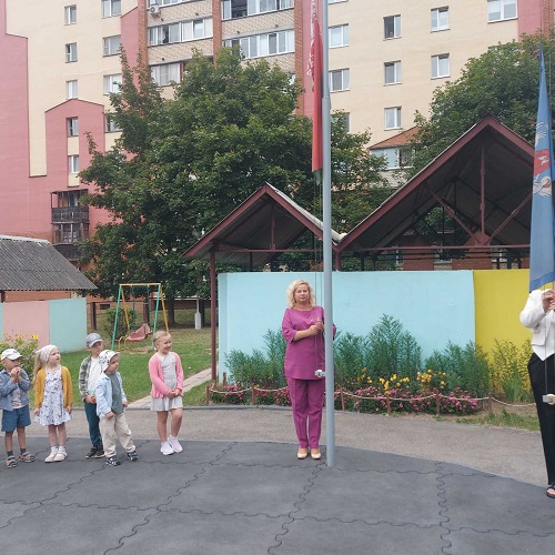 В нашем детском саду первый день нового учебного года прошел, как всегда ярко и эмоционально и начался с торжественного поднятия Государственного флага Республики Беларусь на территории учреждения образования. После чего ребят встретил Карлсон с весёлым развлечением.