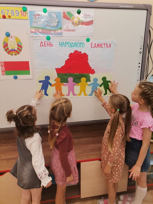 В ходе занятий дети вспомнили об истории появления праздника. Ребята повторили символику нашего государства, прослушали гимн Республики Беларусь.
